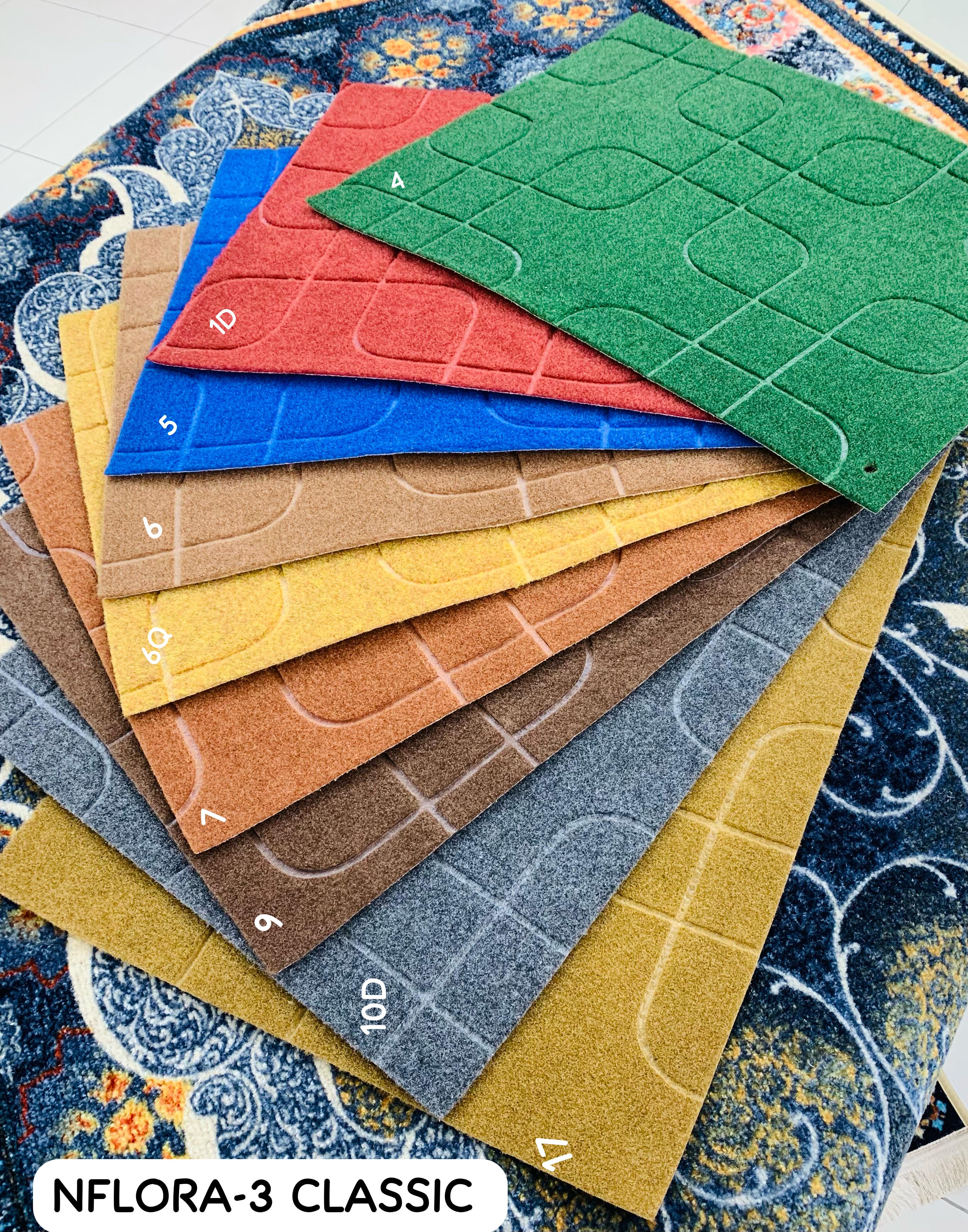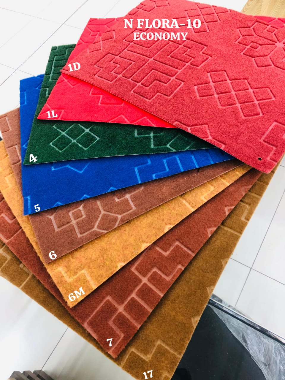 Introducing Flora Carpet, an exquisite Non-Woven Embossed Velour Carpet made from recycled Polyester Staple Fiber. Sustainably produced to provide a fine, uniform, and luxuriously soft surface in your home. Elevate your living space with Flora Carpet